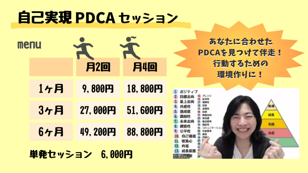 あなたが望む「自己実現」へ進む力を最大限高めるべく、「自己実現PDCAセッション」をスタートさせます。